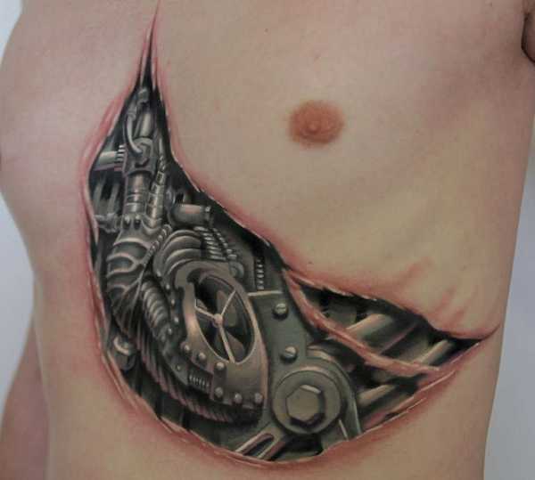 Биомеханика – идея «получеловек-полуробот», создающееся при помощи реалистичных и объемных картинок, имитация врезающихся в плоть механических поршней, шестеренок, других деталей. Основной посыл заключается в декоративной функции, сакрального влияния работа не предусматривает.
