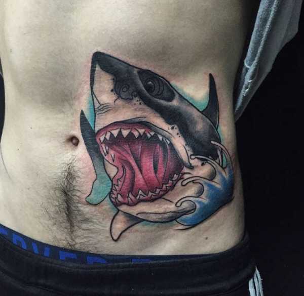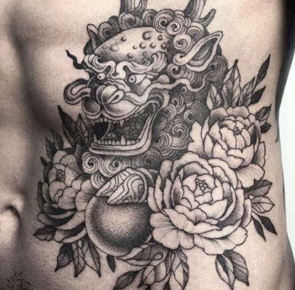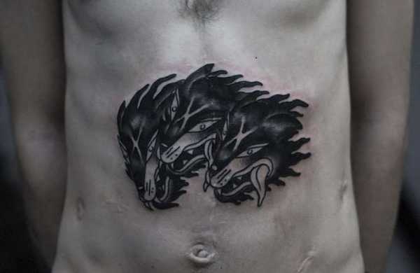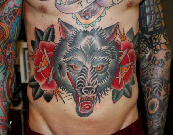 При помощи наколки на животе и ребрах мужчины подчеркивают свою мужественность, стальной пресс, рельефность фигуры и особый стиль. Это преимущественно крупные монохромные композиции, что могут совмещаться с рисунками на груди, руках, плечах и т. д. В топ-список лучших вошли следующие идеи: