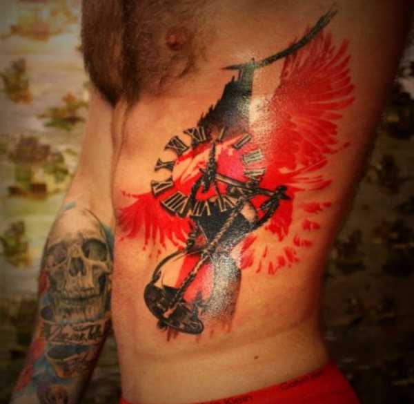 Для справки! Если говорить о ребрах, здесь из-за близкого расположения костей нанесения tattoo будет болезненным, независимо от болевого порога. К еще одному недостатку стоит отнести высокую стоимость масштабных и сложных эскизов. Также при наборе веса есть риски того, что наколка утратит правильную форму и пропорции.