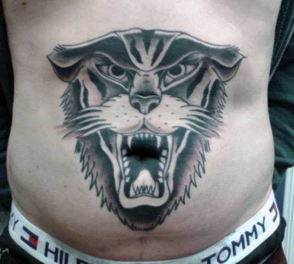 Татуировки на животе среди мужчин встречаются не так часто, как среди женщин.