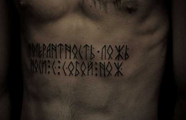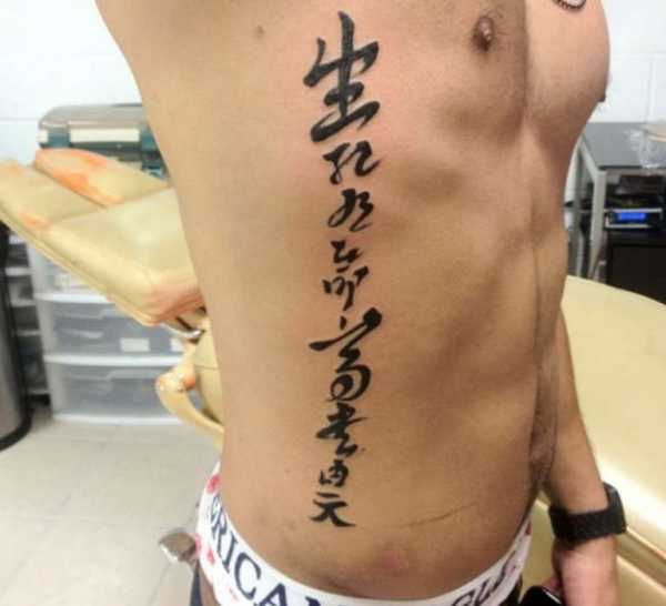 Оригинально и стильно будет смотреться готический шрифт, каллиграфический лучше будет смотреться в чувственных любовных надписях. Можно написать молитву на ребрах в качестве оберега на правый бок, а мотивы, касающиеся духовного и личностного роста – на левый.