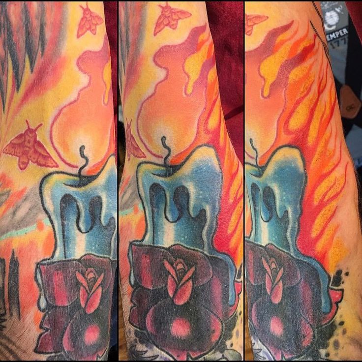 Кредит: @caribou.tattooКредит: @sydoodle_Пламенные татуировки обычно красного и оранжевого цвета, но вы не должны чувствовать себя ограниченными этим. Дизайн пламени может быть любого оттенка, включая зеленый, черный и синий. Каждый цвет имеет уникальное значение как в химии, так и в духовности.