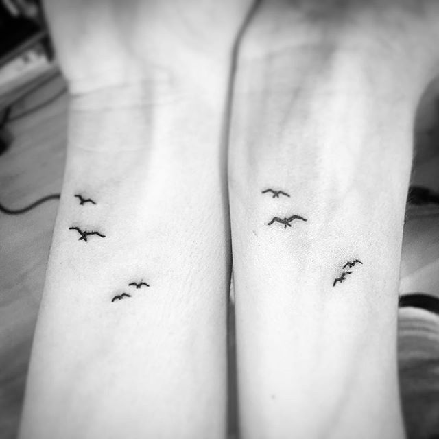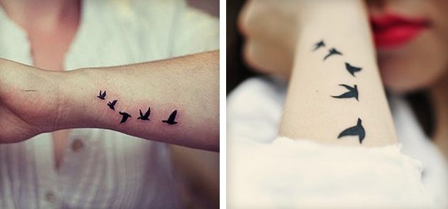 27. Соответствующие татуировки с птицамиЕсли вы хотите сделать соответствующую татуировку, птицы — отличный вариант, поскольку птицы также используются как символ любви; пары могут попробовать эту татуировку.