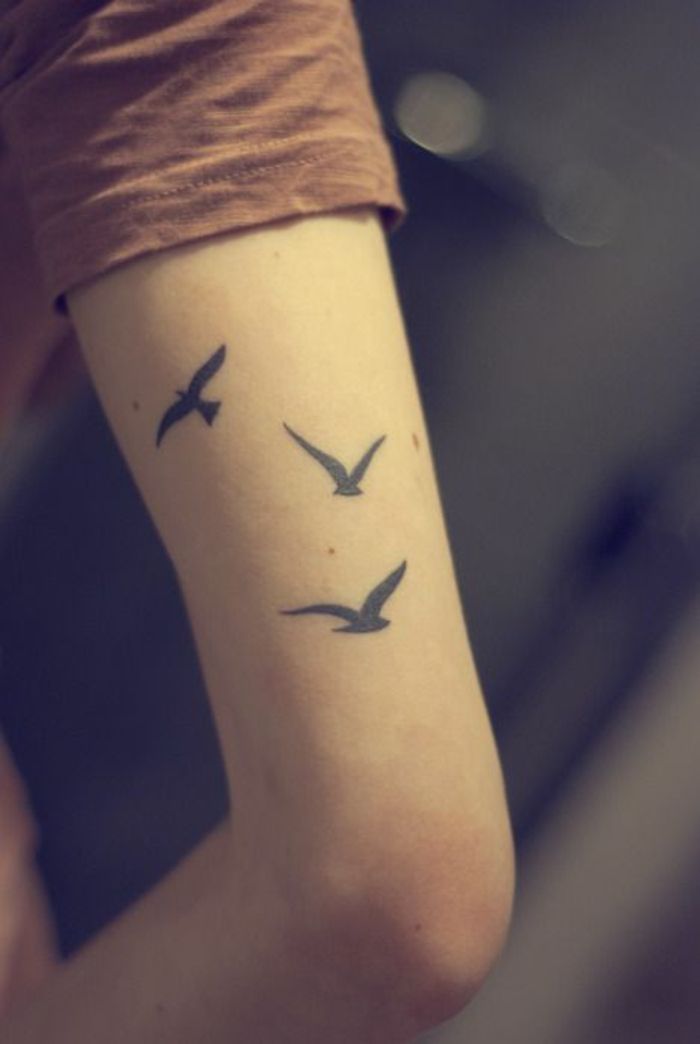 Кроме того, татуировка в виде аккуратной стаи летящих поочерёдно птиц может служить украшением. Тату птиц на руке для девушек выполняется аккуратно и довольно гармонично. Может свидетельствовать об утончённости натуры. Для этого изображения требуется совсем немного места.