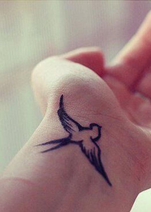 30. Идея татуировки маленькой птички черными черниламиЕще одна отличная идея — татуировка маленькой птицы на запястье черными чернилами.