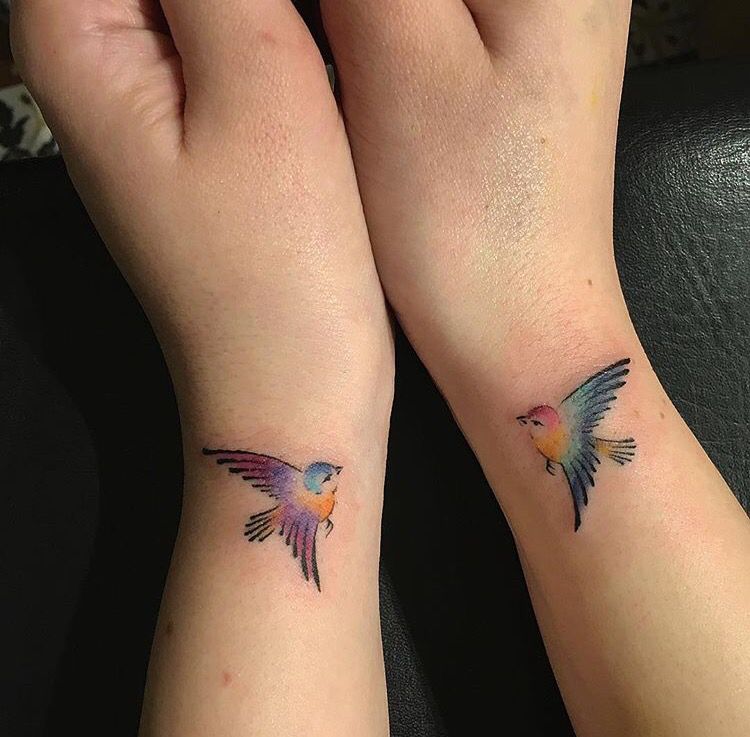 48. Тату разноцветных птиц на запястьеВы можете использовать комбинацию разноцветных птиц на обоих запястьях; это выглядит невероятно. Например, посмотрите на цветовую комбинацию, использованную для птиц в этой татуировке. Вы добавляете ветки и гнезда, чтобы сделать татуировку более драматичной.