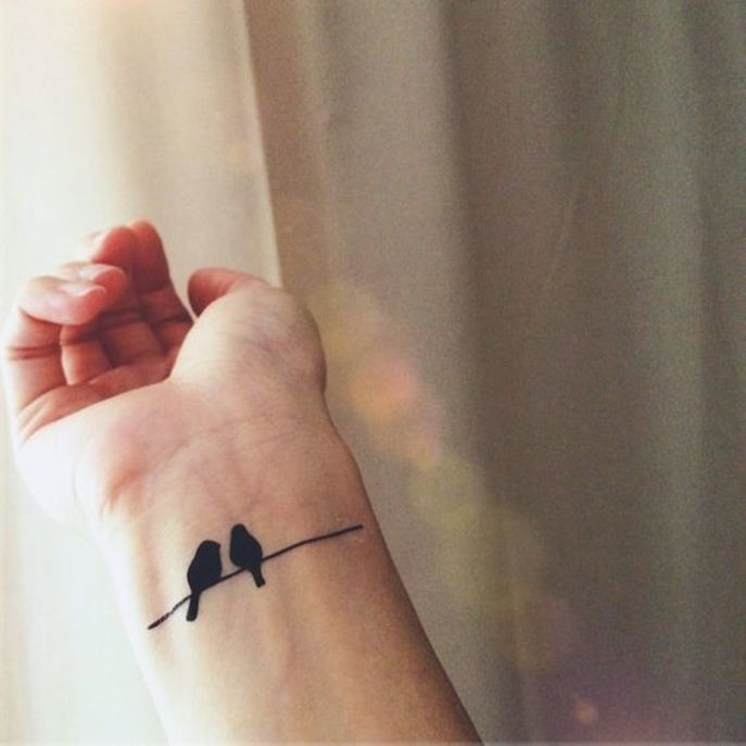 42. Татуировка двух простых черных птиц на запястьеДва птичьих силуэта маленьких птиц также великолепно смотрятся в качестве татуировки.