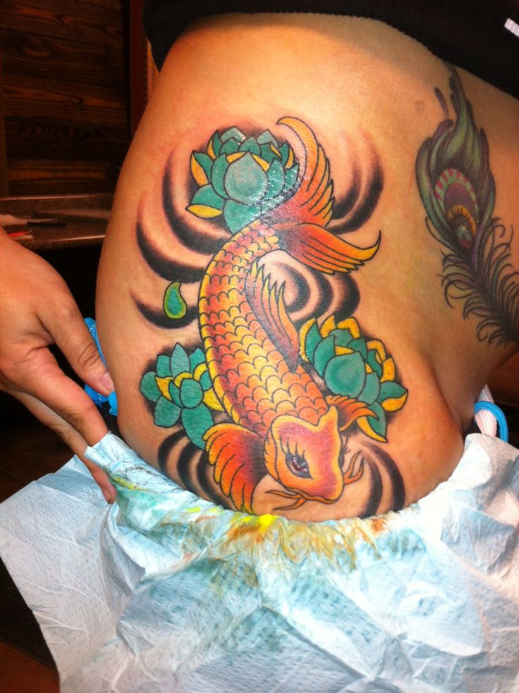 Кажется, это один из самых распространенных способов сделать татуировку с карпами.