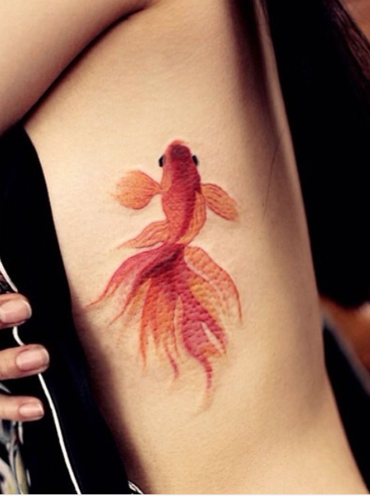 Длинная татуировка рыбы кои идеально подходит для ребер и боковых сторон тела!
