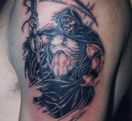Эта одна из тех татуировок, которые явно не для слабонервных. На трусливых и несмелых людей татуировка смерть с косой сразу же наводит страх и ужас.