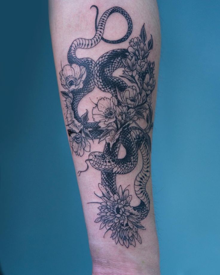 - # 6. Тату цветок и змея на половину рукава