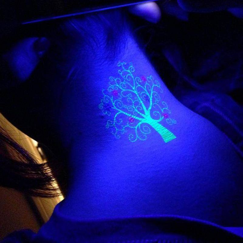 УФ-чернила становятся красочными и светятся под черным светом. И если вы делаете татуировку такого типа, вы должны убедиться, что она находится на видном месте.