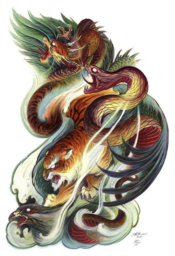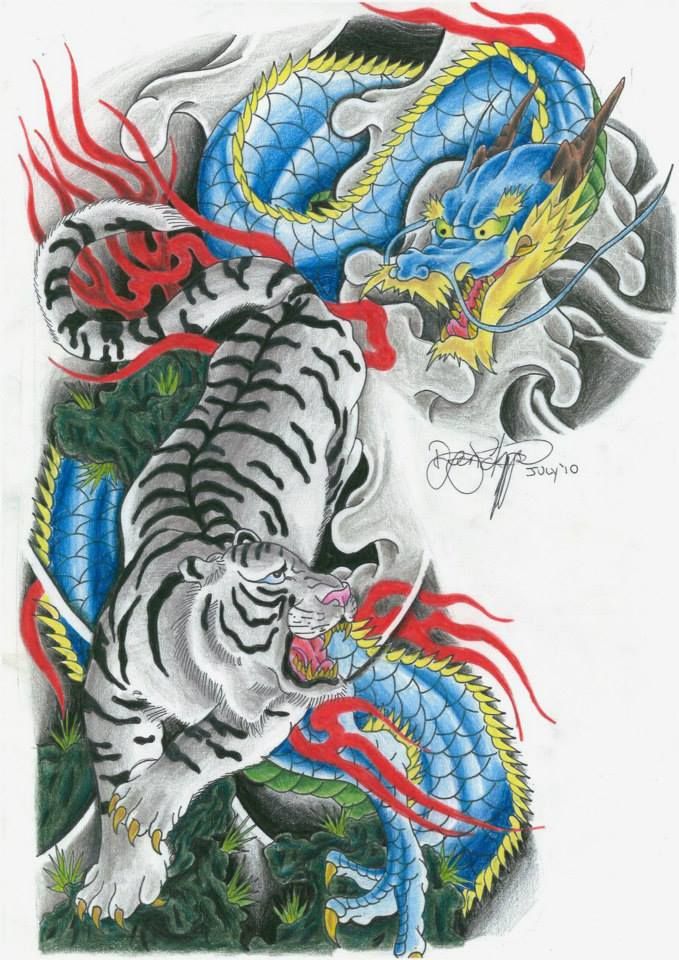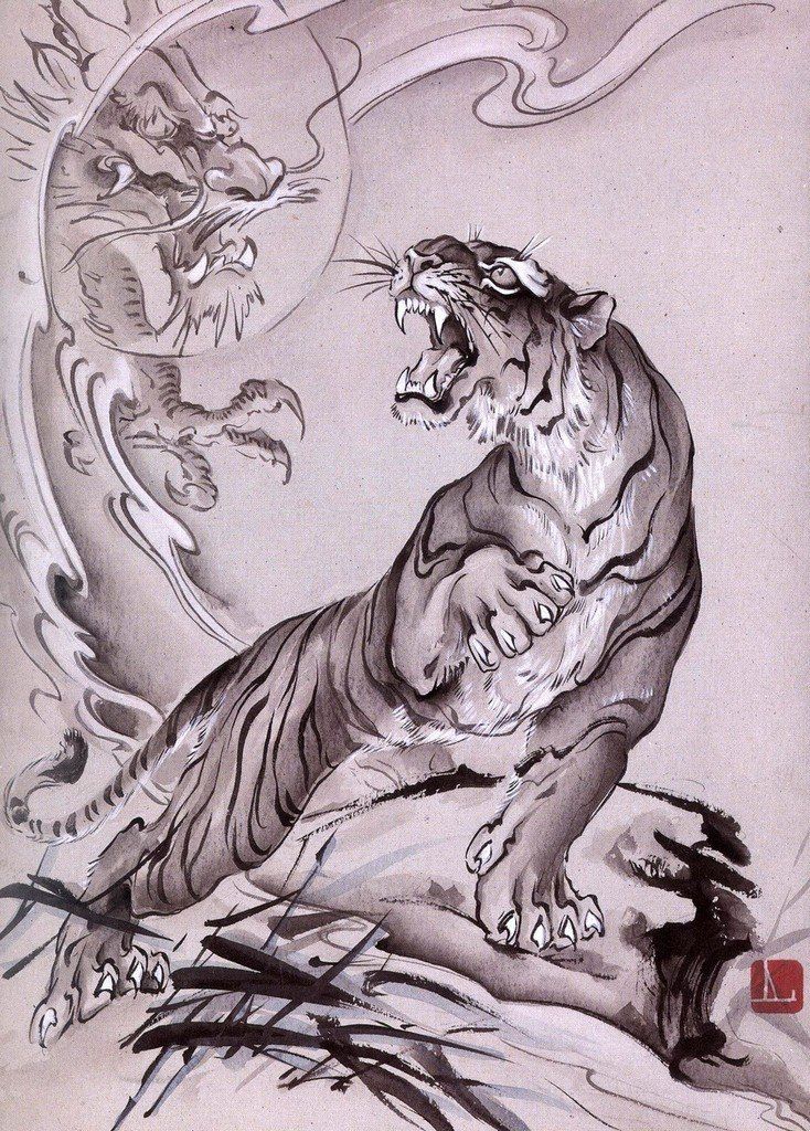 В китайской мифологии драконы почитаются как могущественные существа, способные управлять погодой и приносить удачу. Таким образом, татуировки тигра и дракона часто рассматриваются как способ использовать эти положительные качества.