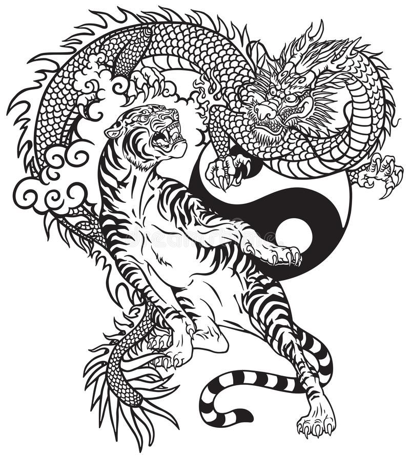Тигр- Дракон — одна из вариаций символов Инь-Ян. Этот дуэт представляет реальность вселенной, где Тигр и Дракон – две противоположные силы. Китайская мифология рассматривает эти силы как идеальное дополнение друг друга. Причина в том, что и тигры, и драконы являются безжалостными, свирепыми и могущественными противниками друг друга.