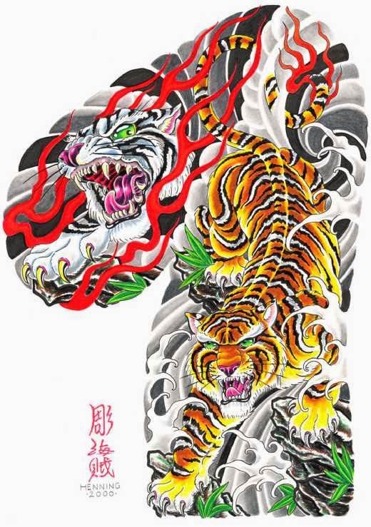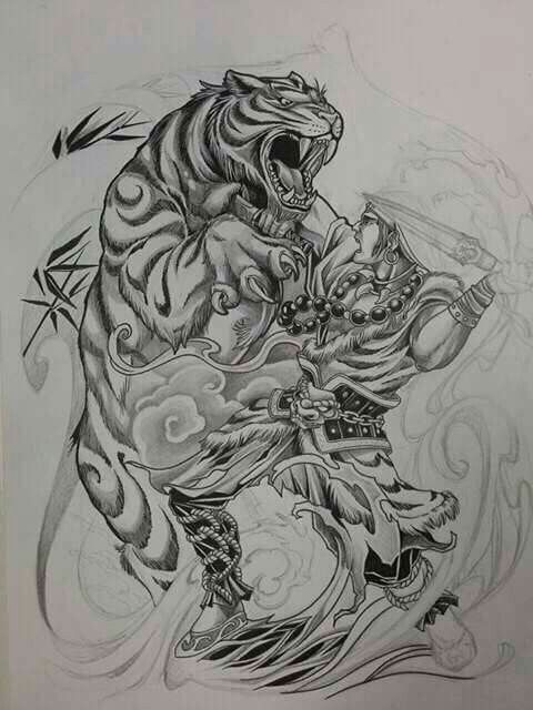 Эта татуировка обычно состоит из Тигра и Дракона, стоящих лицом друг к другу, где Тигр представляет силу и мощь, а Дракон представляет мудрость и отвагу. Вместе они рассматриваются как символы защиты.