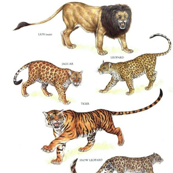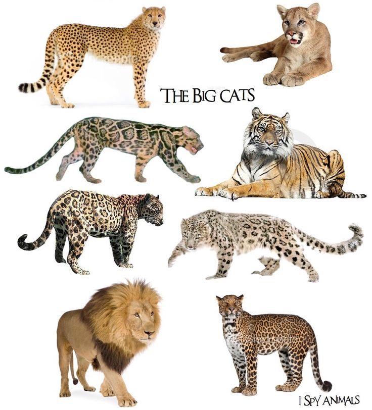 Итак, к большим кошкам относятся лев, тигр, ягуар, леопард, снежный барс и дымчатый леопард, но не относятся такие виды как пума и гепард.
