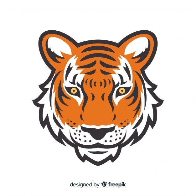 Сначала рисуется контур будущей головы, к которому дорисовываются уши, глаза, морда, детали морды и полоски.