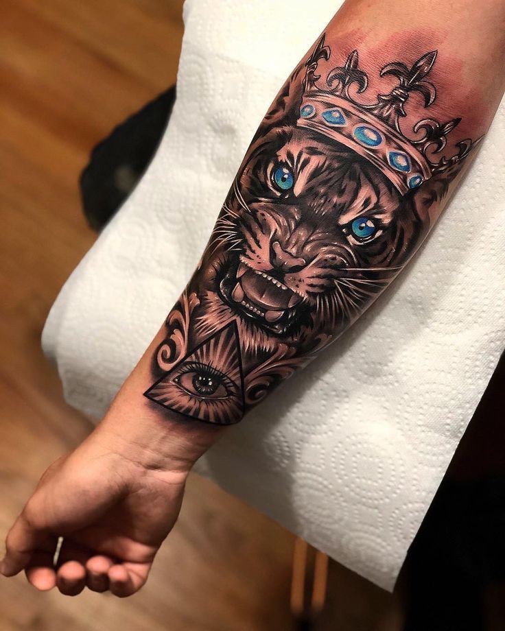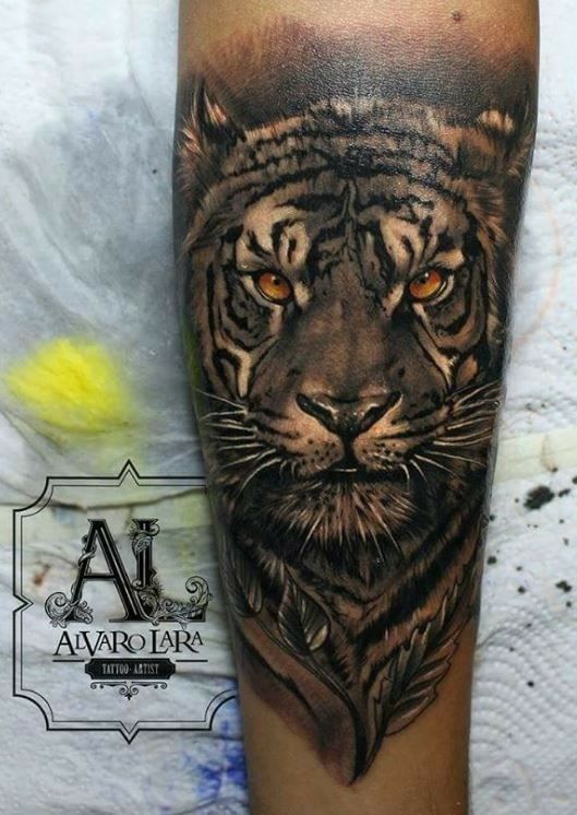 Индийский фольклор гласит, что глаз тигра — самый загадочный и могущественный предмет в мире. Татуировки тигра иногда способны запечатлеть впечатляющую красоту тигрового глаза, и это одна из таких татуировок. Это очень реалистично и мощно.
