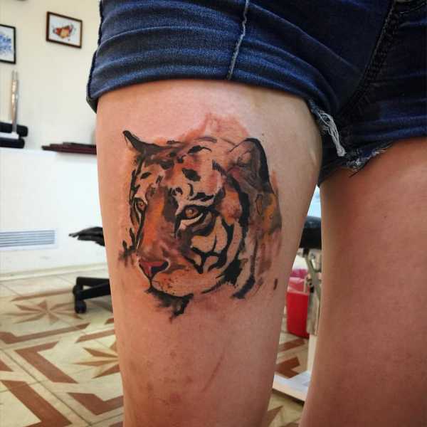 Тигр тату имеет много схожих черт с татуировкой льва. Это грациозное животное объединило в себе две черты: красоту и силу. Именно по этой причине тигр тату одинаково популярен у обоих полов.