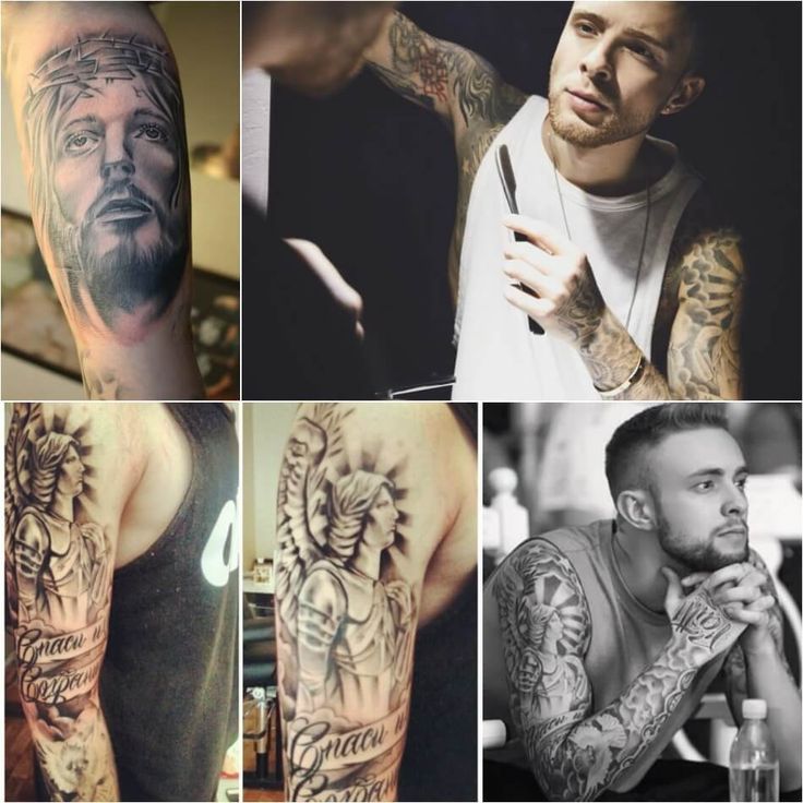 На правом плече музыканта можно увидеть очень качественную и запоминающуюся работу. Это герои любимых фильмов «Бешеные псы», «Крестный отец» и «Лицо со шрамом».