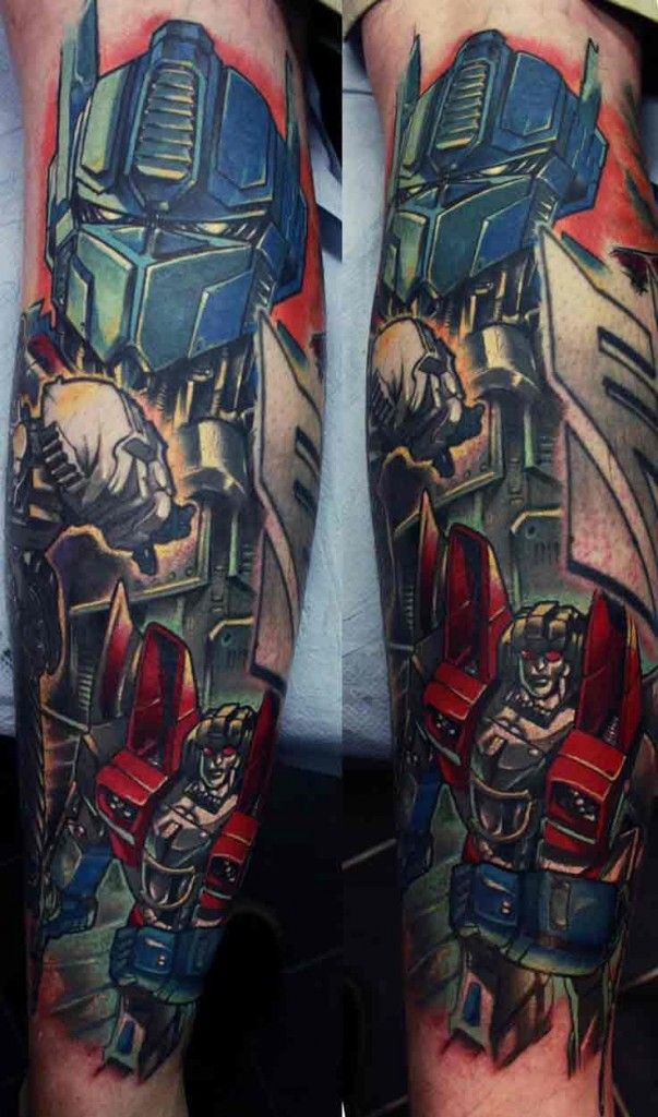 - Автоботы — любимая тема татуировки, когда речь идет о Трансформерах. Они представляют правую сторону битвы, и многие люди, особенно мужчины, делают их татуировки. Им нужно выделить много места для включения робота. Многие люди наносят маску на свое тело. Художнику нужно будет использовать яркие цвета, которые точно соответствуют персонажам фильмов франшизы «Звездные войны».