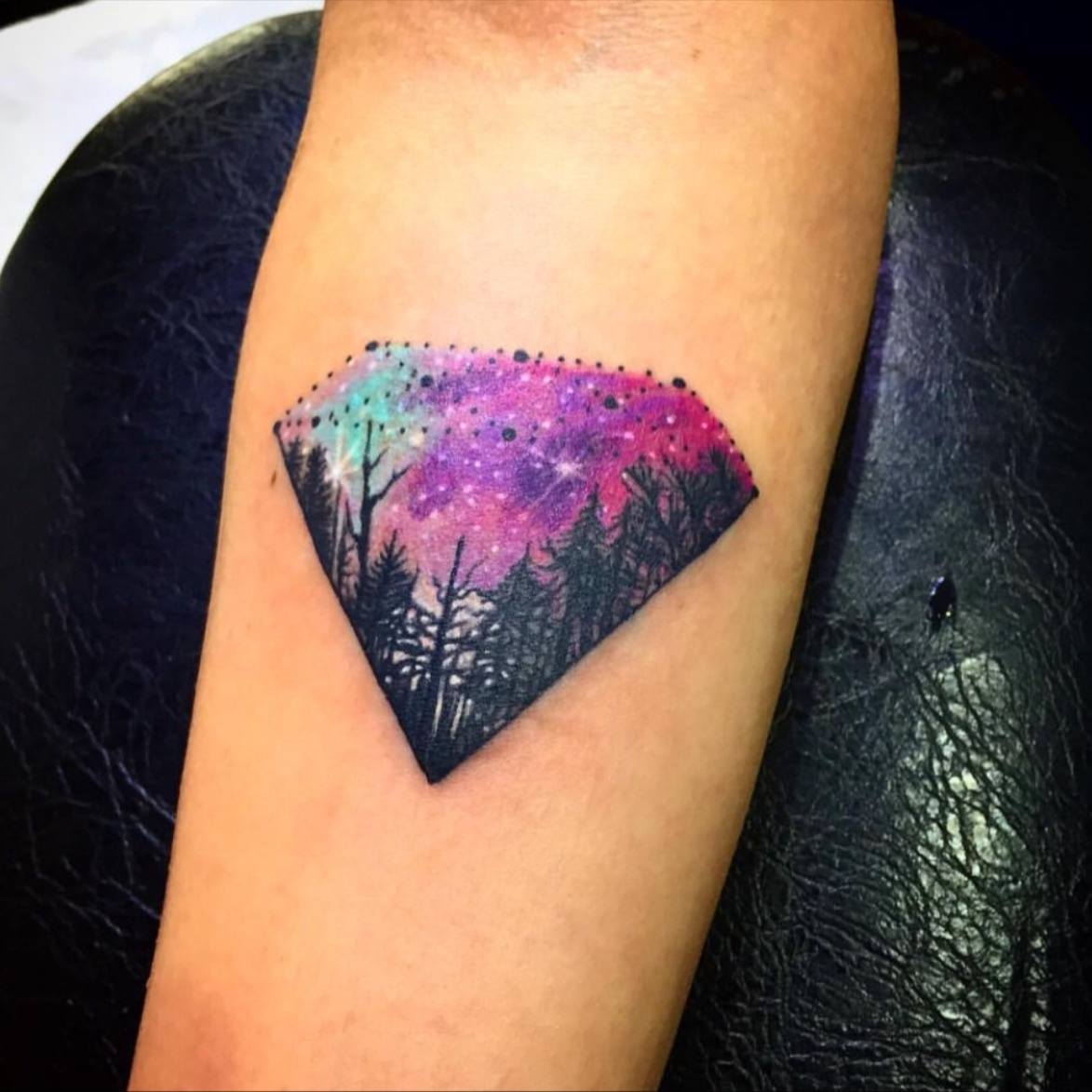 На этой татуировке алмаз состоит из треугольников. Линии складываются идеально по форме. Эта татуировка с треугольной парой – одна из самых популярных татуировок на рынке.