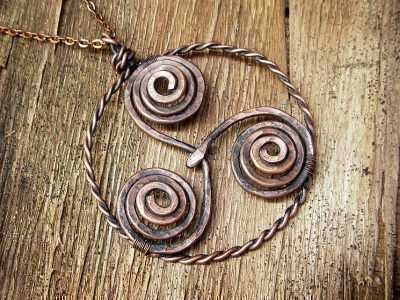 - Очень распространенной формой древнего амулета были 3 ветви, которые закручивались в спираль. Иногда на линиях дорисовывали листья и плоды.