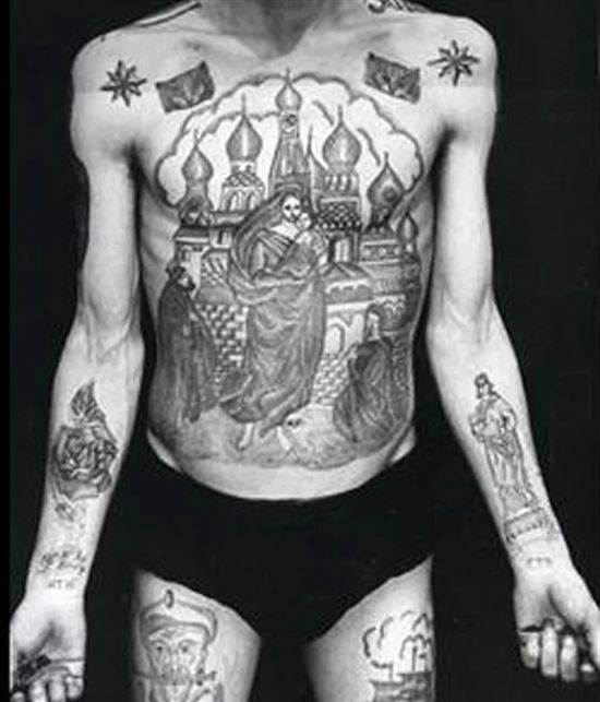 У уголовной тематике эти “раскраски” отношение вряд ли имеют, дело в том, что все, что на ентом папуасе намалевано, скорее несет налет неонацисткой символики в купе с притянутыми за яйца кельтскими узорами. Я уже 100 раз писала, что современная мода на татуировки перекроила все уголовные словари и картотеки: основная масса традиций их нанесения не соблюдается, за что, конечно, в зависимости от зоны народ расплачивается, но не всегда и не везде.