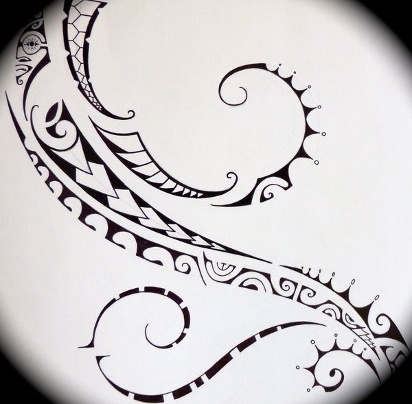 Замысловатые узоры, включающие в себя рисунки панциря черепахи, бамбука, морских раковин, тропических цветов. В зависимости от того, что изображено на тату