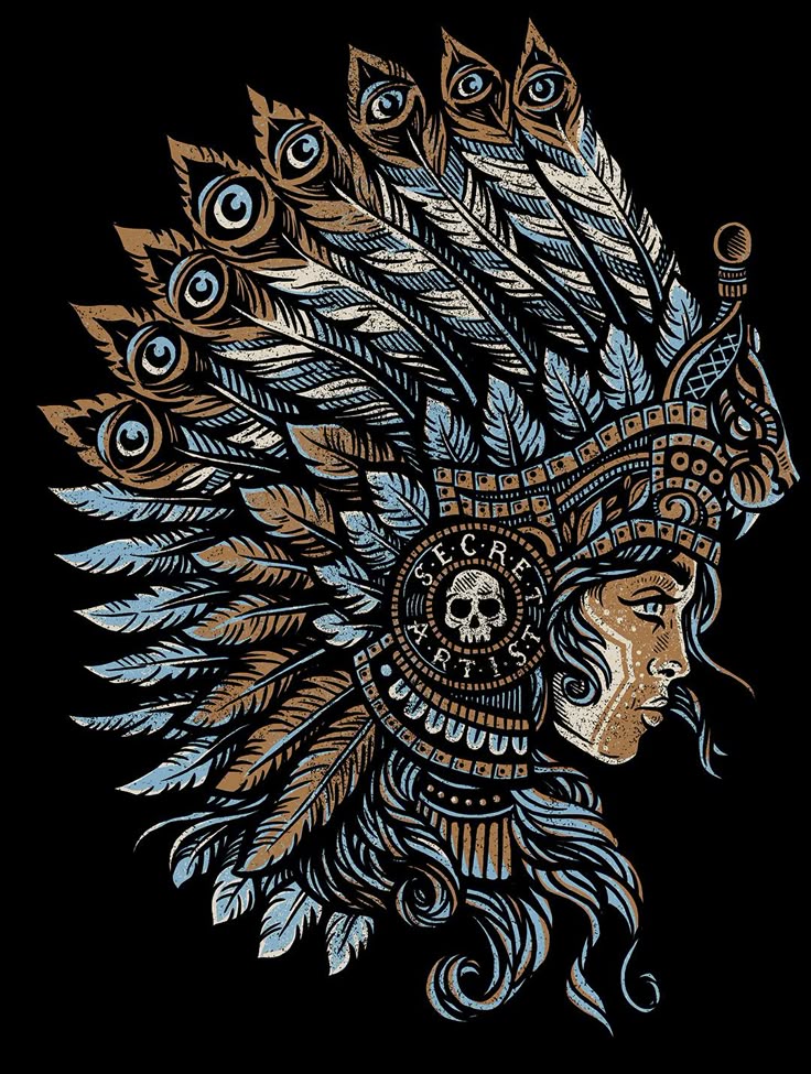 РукаваТатуировки на рукавах очень популярны среди американцев, и они нередко выбирают традиционные индейские рисунки. Чаще всего центральной фигурой татуировки является девушка в традиционном головном уборе с перьями и очень выразительным взглядом.
