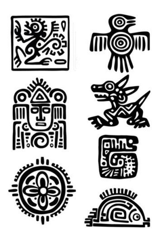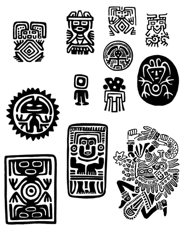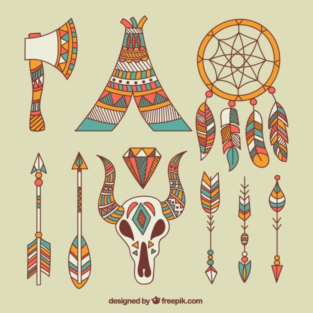 Среди традиционных символов, используемых в таких татуировках, — солнце, луна и звезды; стрелы как символ войны и перья как символ свободы.
