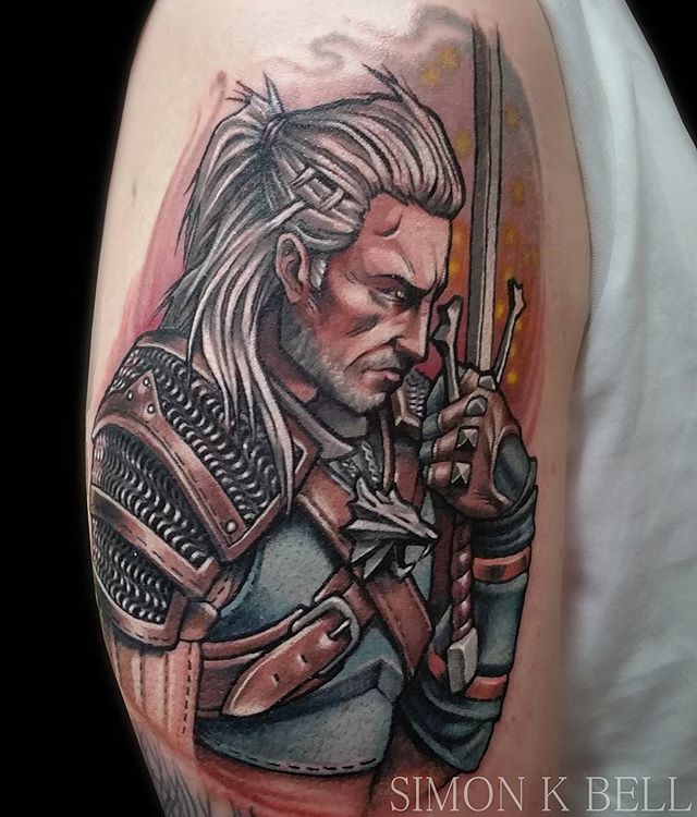 Тату ведьмак чаще всего выбирают поклонники этого произведения, геймеры и ролевики, воссоздающие события, описанные в книгах о Геральте.