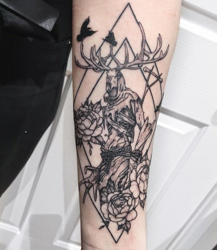 Если на тату ведьмак изображен сам главный герой Геральт, то такую татуировку можно считать олицетворением силы и уверенности в себе. Человек с такой татуировкой безусловно обладает лидерскими качествами, ведь он ассоциирует себя непосредственно с этим персонажем.
