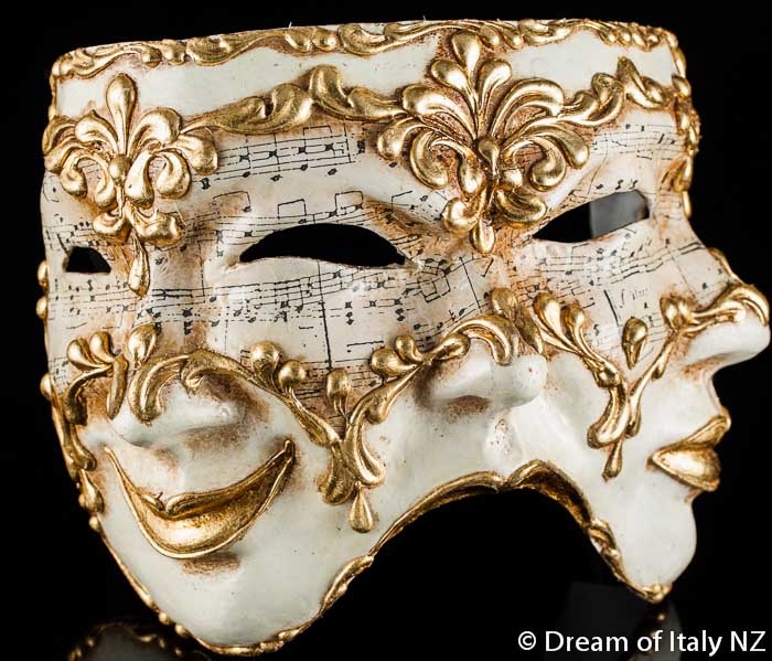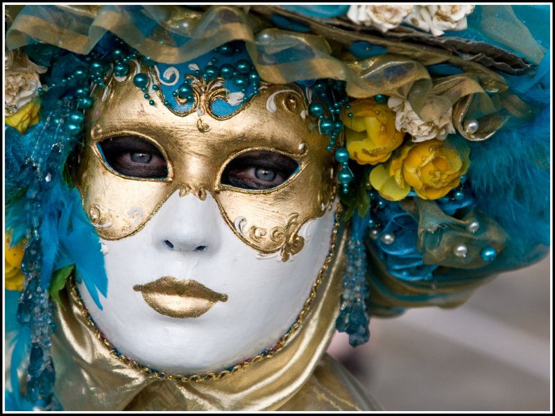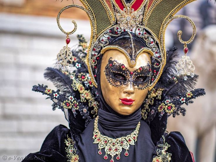 Одна из первых актрис в Комедии дель арте чувствовала, что ее лицо было слишком красивым, чтобы скрыть его лицо. , и поэтому вместо этого носила полумаску, специально разработанную для нее. Тип маски быстро стал популярным и в настоящее время богато украшен золотом, серебром, хрусталем и перьями.