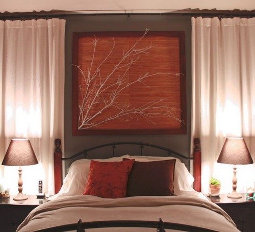 Декор из веток для изголовья кровати