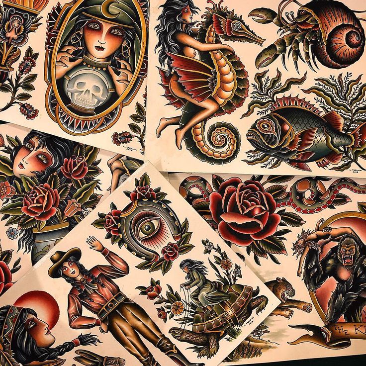 олдскульные татуировки – винтажные тату-графики, -клипарты, -мультфильмы и -символыОлдскульные татуировки