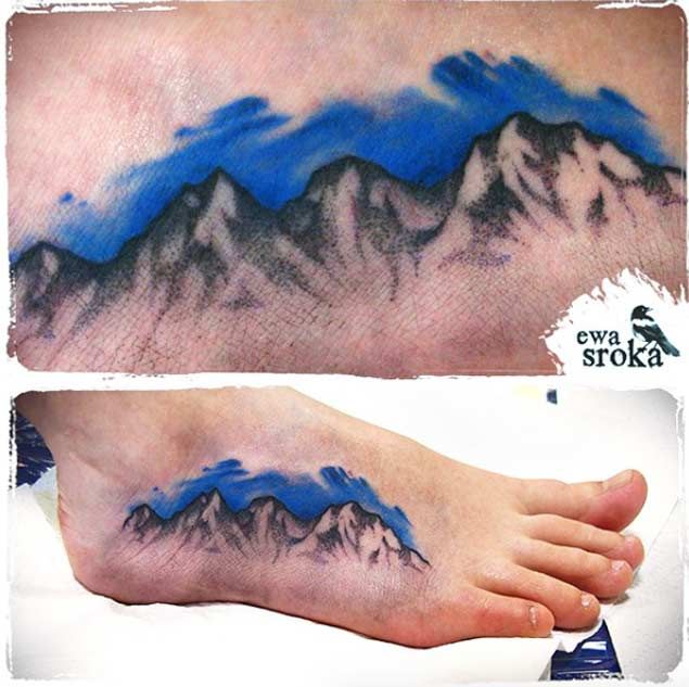 Вряд ли стоит украшать свое тело темными, мрачными горами с вершинами, укутанными тучами. Такое изображение не принесет радости и уверенности ни самому носителю тату, ни окружающим.