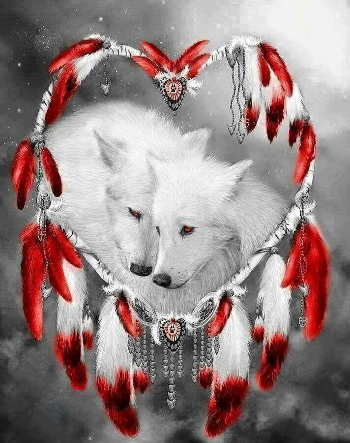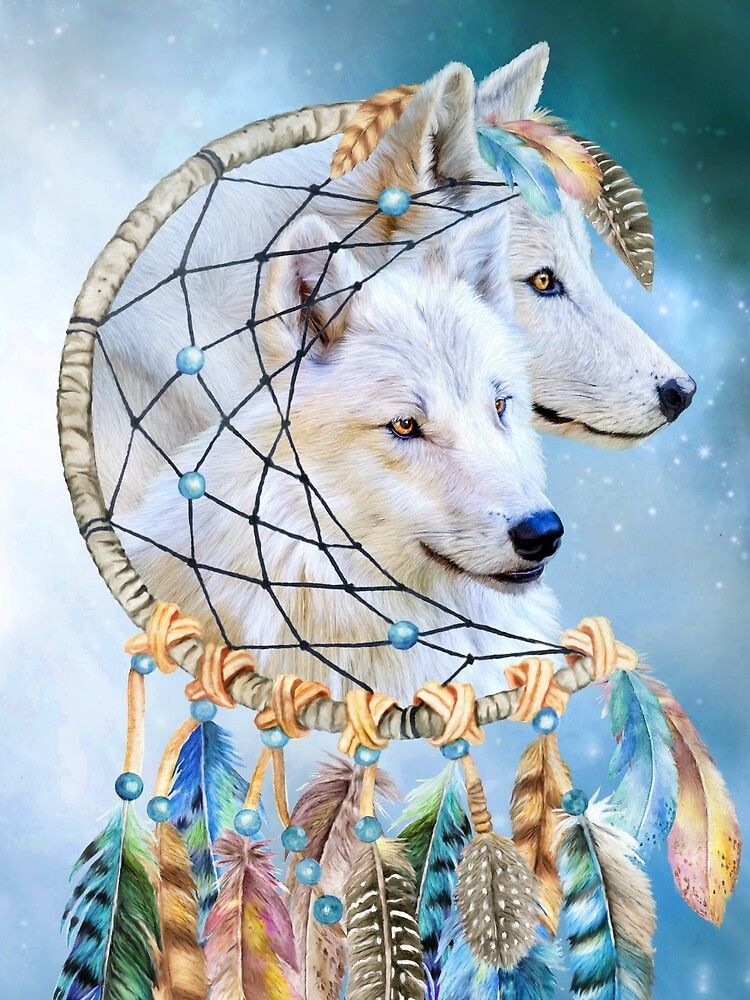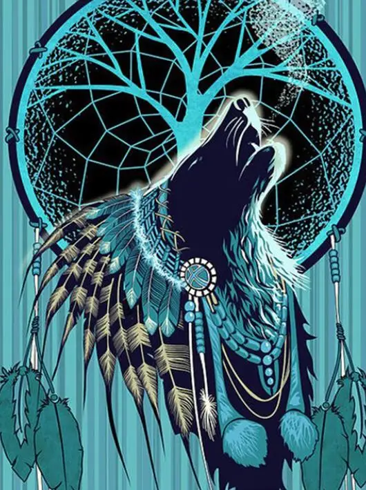 5D Diamond Painting Heart Wolf Dream Catcher Kit