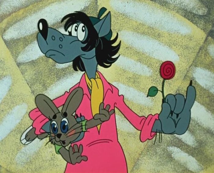 А это анимация ну погоди с танцующими волком и зайцем. Волк какой-то сонный или томный, а заяц пугливый.