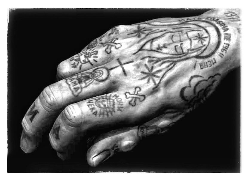 Татуировки на руках и пальцах были обычным явлением среди воров – Данциг Балдаев, Российская энциклопедия уголовных татуировок, том II, 133.