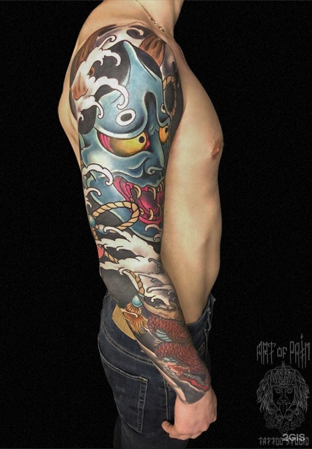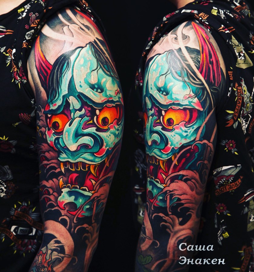 15.Японская татуировка на рукаве с маской