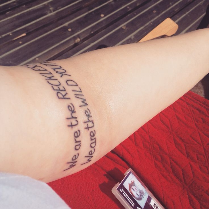 Татуировка: На правом локте татуировка со словом «YOUNG»