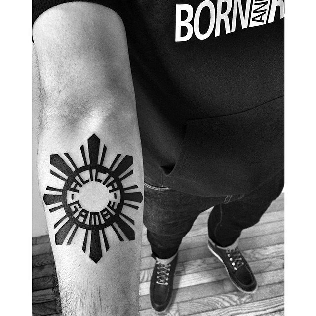 Значение: В декабре 2014 года татуировку впервые заметили во время выступления BTS на Mnet Asian Music Awards. Многие поклонники также утверждали, что эта татуировка была временной, потому что они не могли найти ее после его выступлений на сцене позже. Когда его татуировка вернулась на дебюте BTS Good Morning America в 2018 году, считалось, что он в конечном итоге превратил ее в постоянную.
