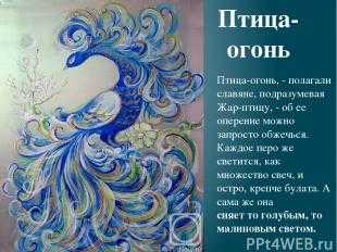 Птица-огонь, – полагали славяне, подразумевая Жар-птицу, – об ее оперение можно запросто обжечься. Каждое перо же светится, как множество свеч, и остро, крепче булата. А сама же она