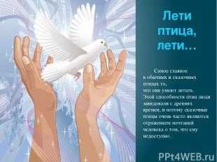 Счастье тому, кому удастся поймать Жар-птицу, но в сто раз большее счастье тому, кого Жар-птица почтет за своего повелителя. Именно ему она будет отдавать свое благотворное тепло всю жизнь.