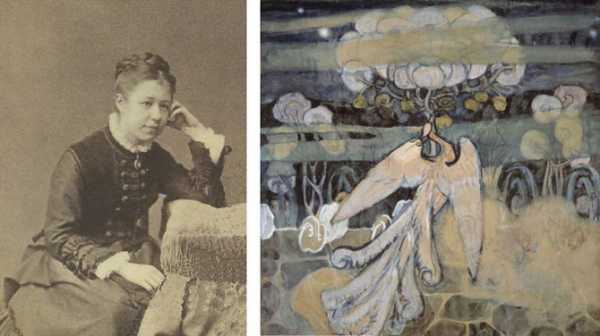 А вот первой из профессиональных художников к образу Жар-птицы обратилась Елена Дмитриевна Поленова (1850 – 1898), сестра В.Д. Поленова. В письме к критику В. В. Стасову от 29 января 1896 года она сообщала, что ей предложили исполнить эскиз большого панно для вышивки на русскую тему. Сюжетом художница выбрала Жар-птицу. Она изобразила ночь и дерево с золотыми плодами, на вершине которого дремлет огненная птица. Панно было выполнено в вышивальных мастерских М. Ф. Якунчиковой и экспонировалось на Всероссийской промышленной и художественной выставке в Нижнем Новгороде летом 1896 года. В том же году она начала серию иллюстраций к сказке о Жар-птице.