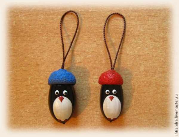 Расскажу на примере этих забавных пингвинят об особенностях работы с желудями и как такие подвески сделать.