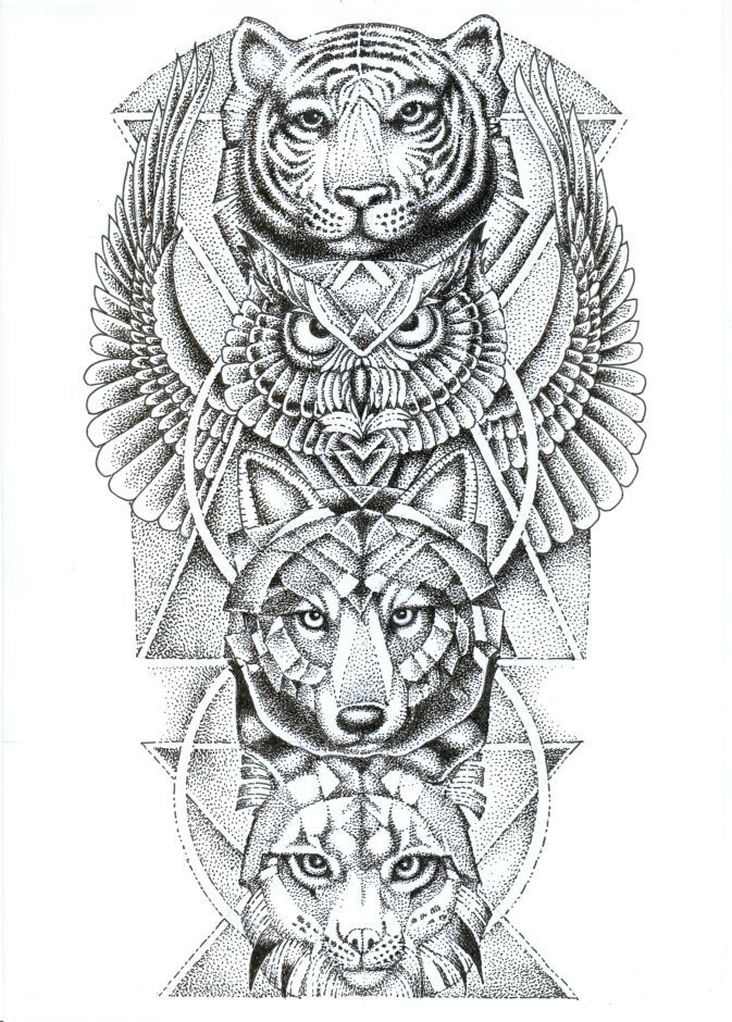 Татуировка животных была популярна в ранних племенных культурах (особенно среди коренных американцев). Они считали животных одними из самых духовных существ. Они верили, что достигают духовных ориентиров через живых существ и предметы, поэтому делают татуировки с изображением разных животных. Также они считали, что одно значение не перекроет значение всех татуировок, каждое животное имеет определенное уникальное значение.