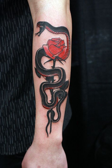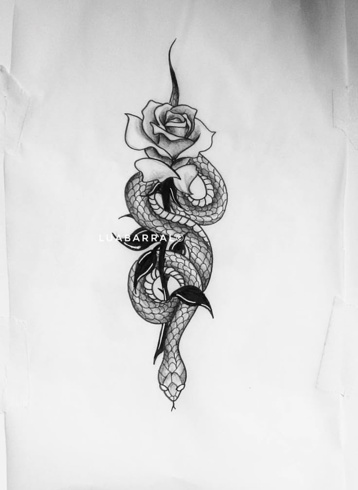 Татуировка змеи и розы может символизировать многое, но чаще всего ассоциируется с опасностью и любовью. Да, верно. Опасность, потому что змея часто считается символом зла, и любовь, потому что роза считается самым романтичным цветком.