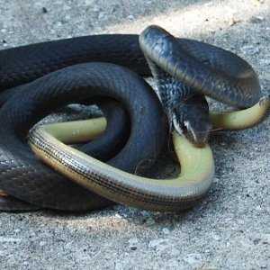 У Джеймса Б. Мерфи из Смитсоновского музея естественной истории в Вашингтоне, округ Колумбия, также однажды «была королевская змея, которая сбрасывала кожу и начала поедать чешуйки, которые еще оставались на хвосте. Она заглатывала свой хвост до тех пор, пока я не вмешался».